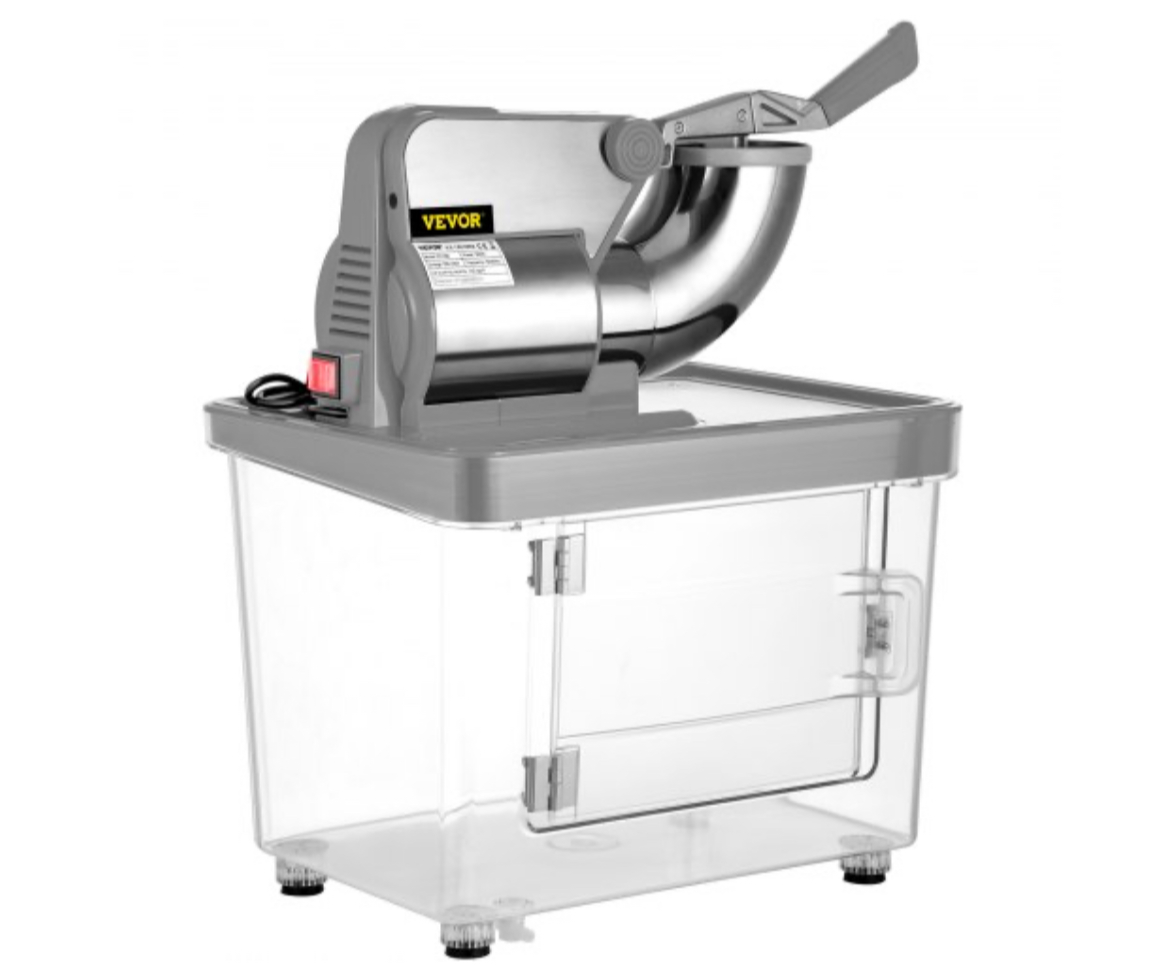 - Crushing Efficiency: Our commercial snow cone machine, ETL certified, features a higher ice shaving efficiency and hourly yield with the dual-blade design. It can double the efficiency of ice shaving compared to those with a single one. Fueled by the 300W copper motor (1450 r/min), our shaved ice maker can produce about 396.8 lbs (180 kg) per hour, meeting your urgent demands in a short time.